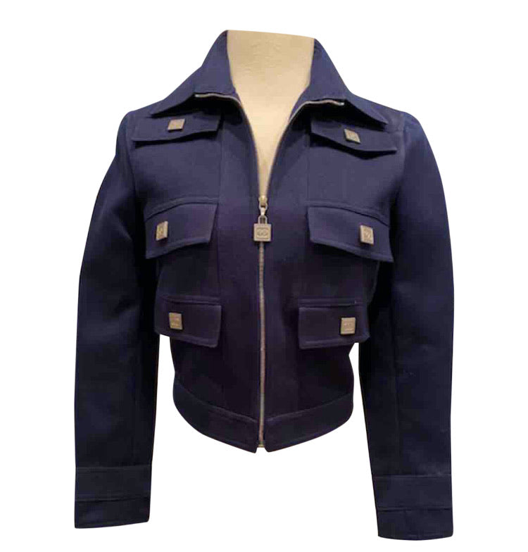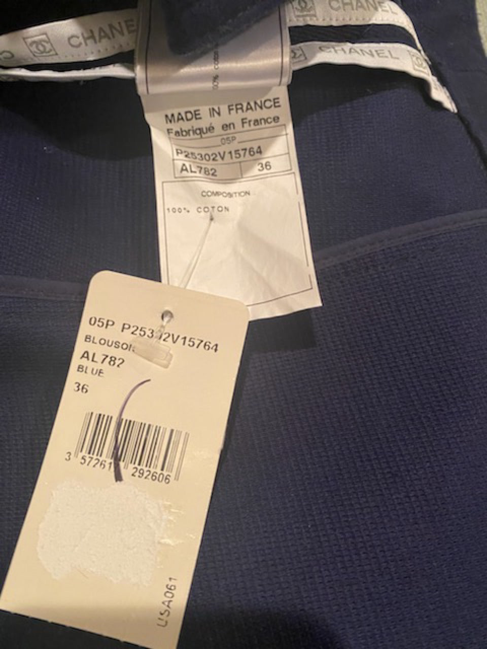 NWT Chanel 05P 2005 Spring short Sporty Navy Blue jacket logo zippers FR 36
