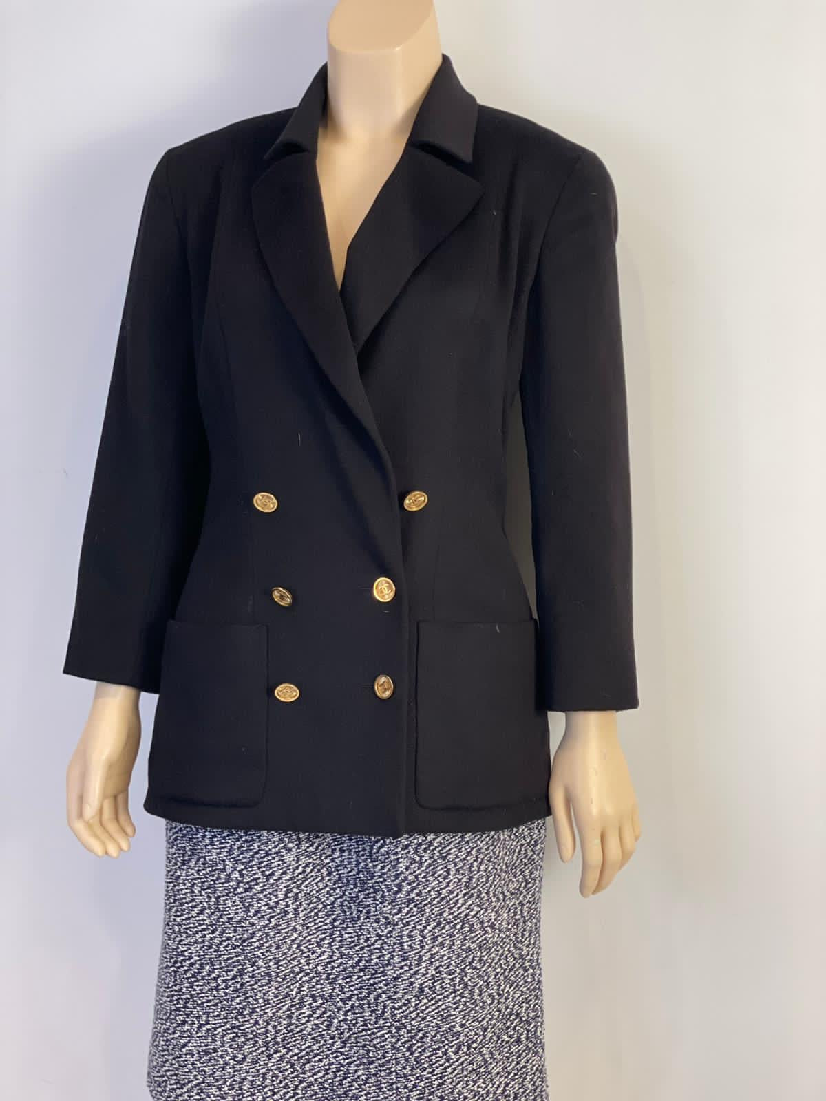 From Chanel's collection 23, early 1990's which is just as stylish now as it was when it was new! And it is in new condition. It has small shoulder pads and 2 patch pockets on the front.