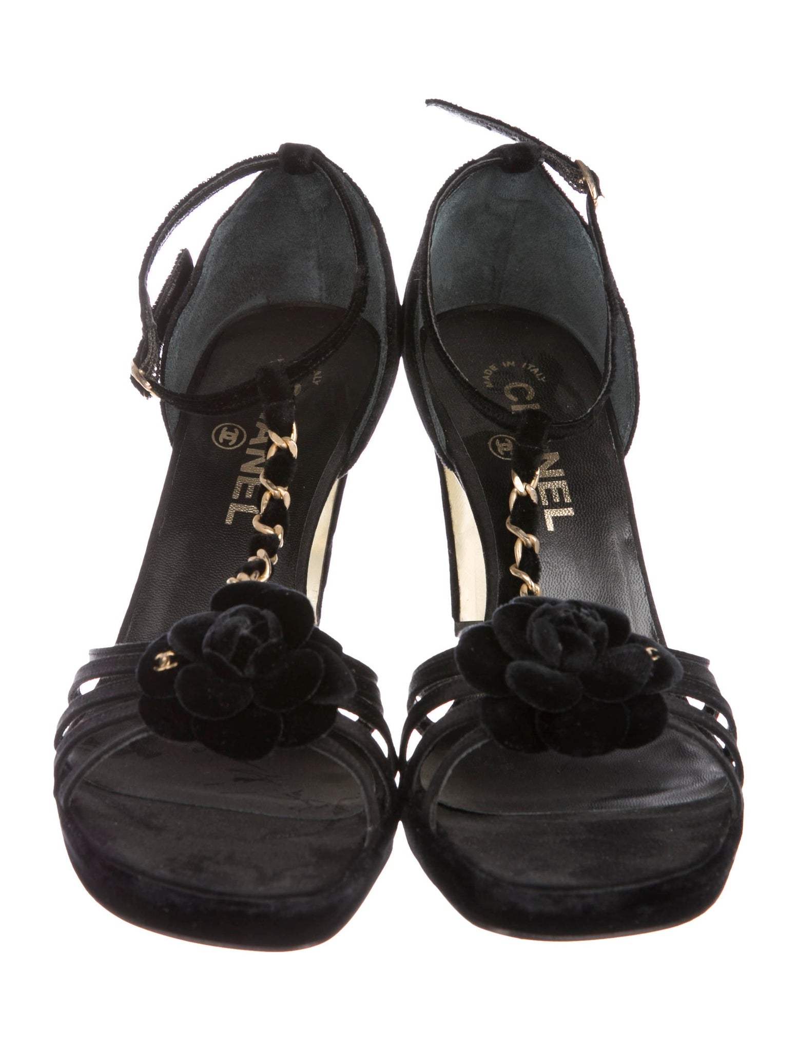 Chanel Black Camellia Flower Velvet Strap Sandal Heels EU 40 US 9.5