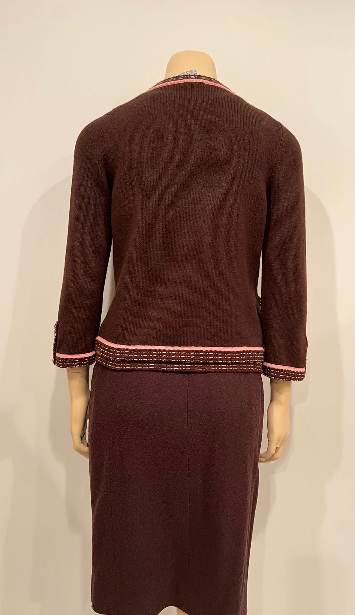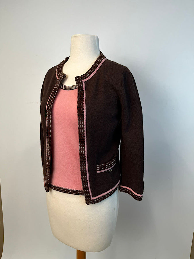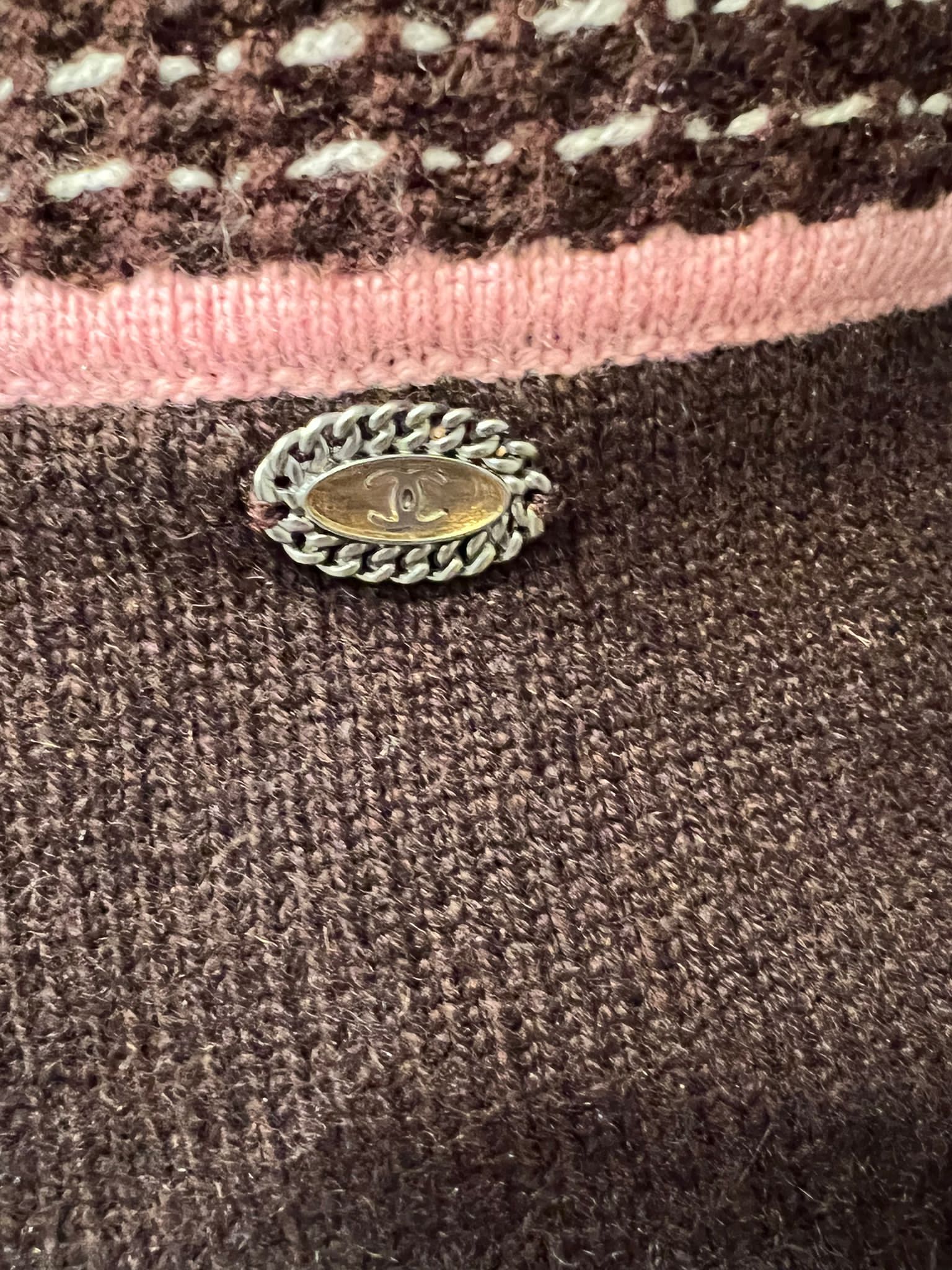 Fabulous Chanel cashmere twinset, flawless! Pink and brown from the 05A 2005 Fall Collection. In person the pink is more Pink than the slightly salmon color shown in the pictures.