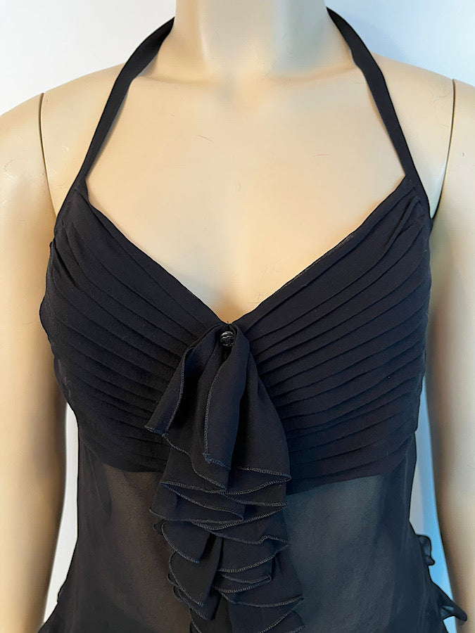 Chanel 03A 2003 Fall Collection sheer black halter top.