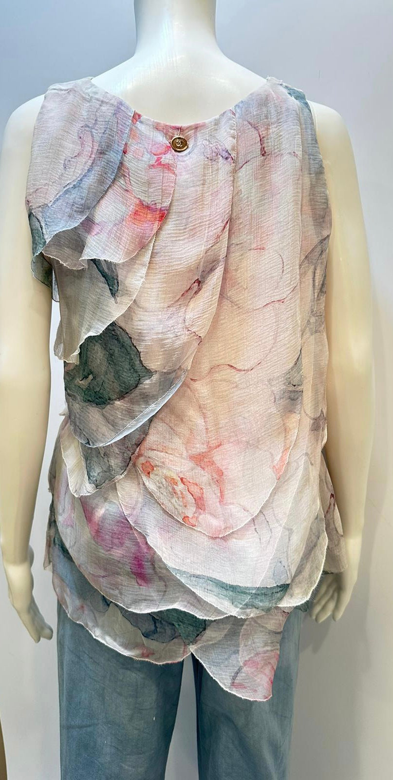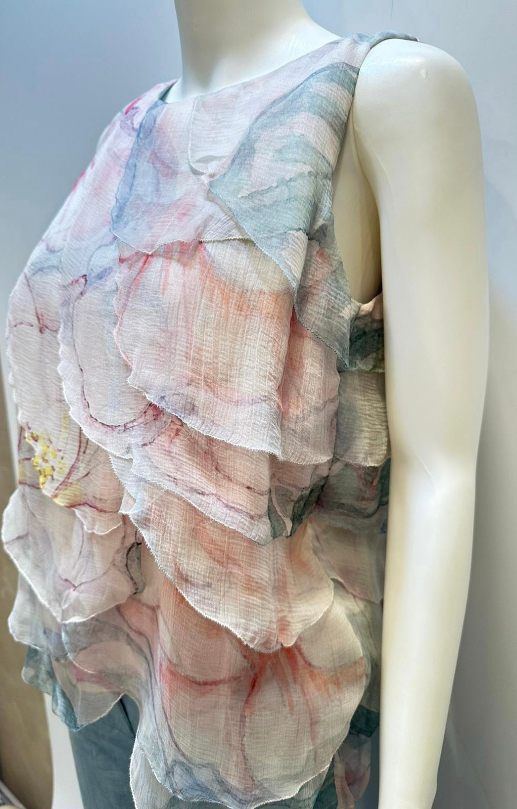 New With Tags-Chanel lightweight blouse/top with overlapping layers of filmy organza. From the 13C Paris-Versailles Runway Cruise Resort Collection.
