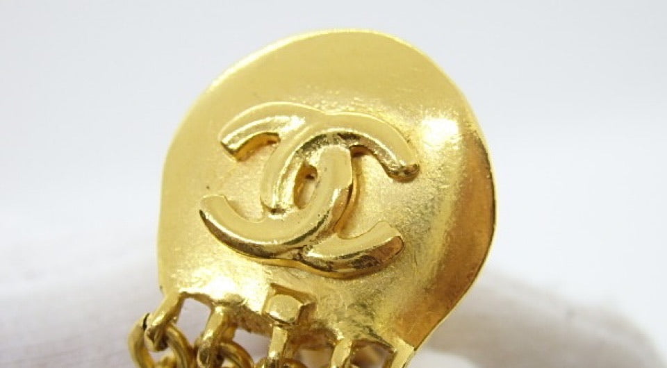 Chanel 96P, 1996 Spring dangle fringe gold plated CC clip on earrings