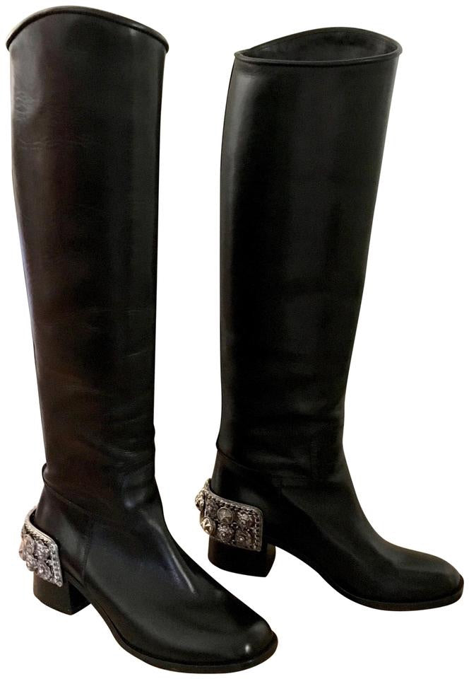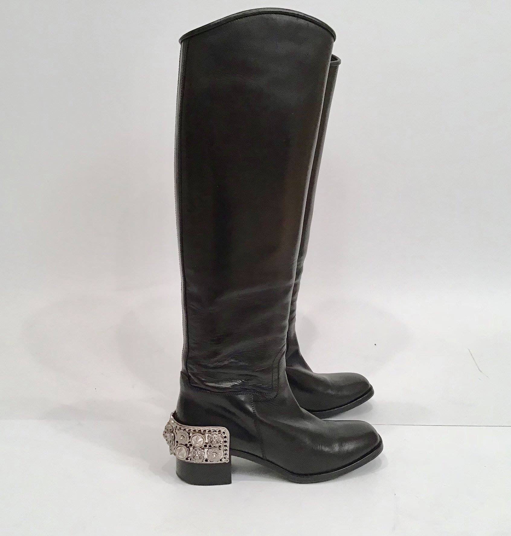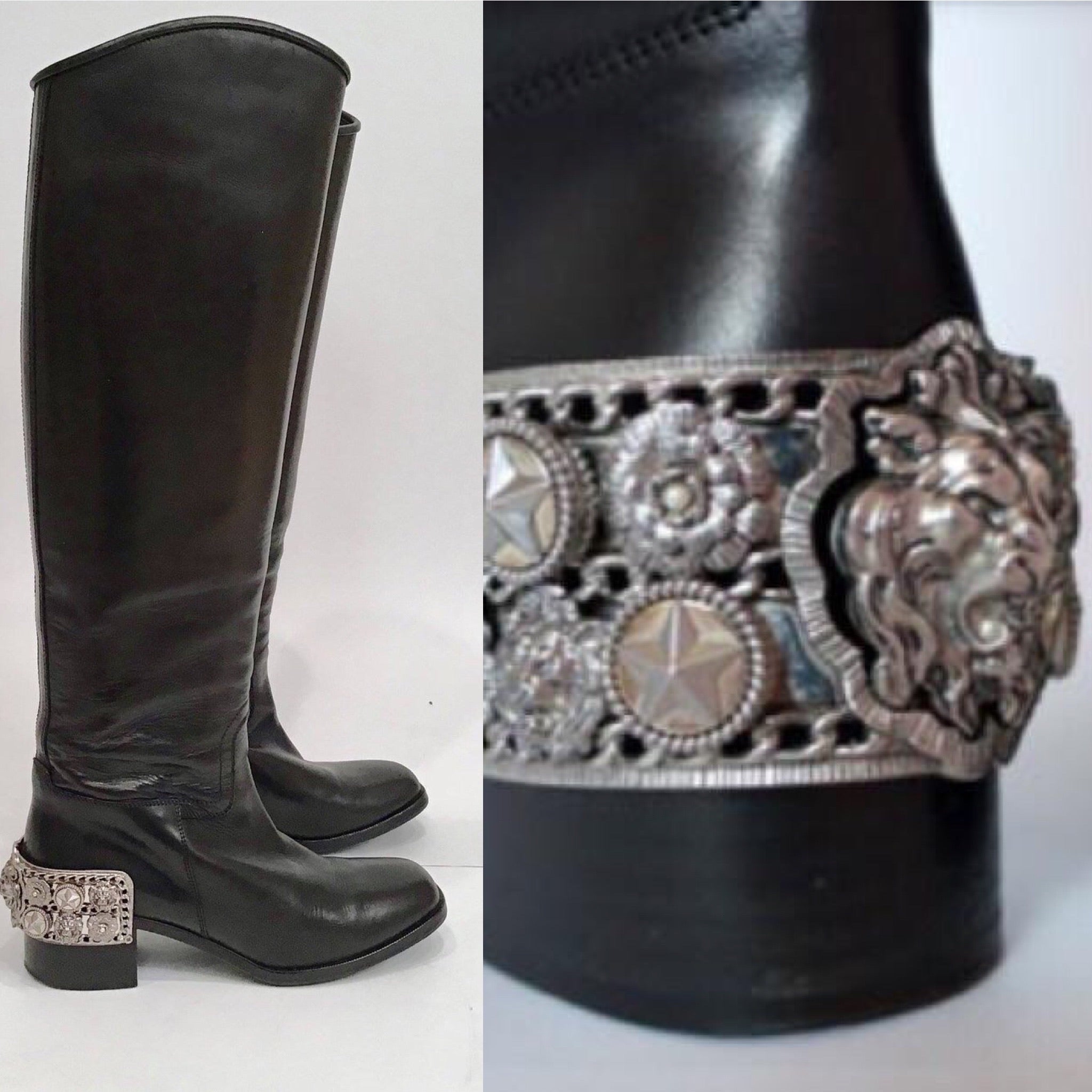 Chanel 07A Paris Monte Carlo Lion Head Icons tall black leather riding boots EU 39.5 US 8.5/9