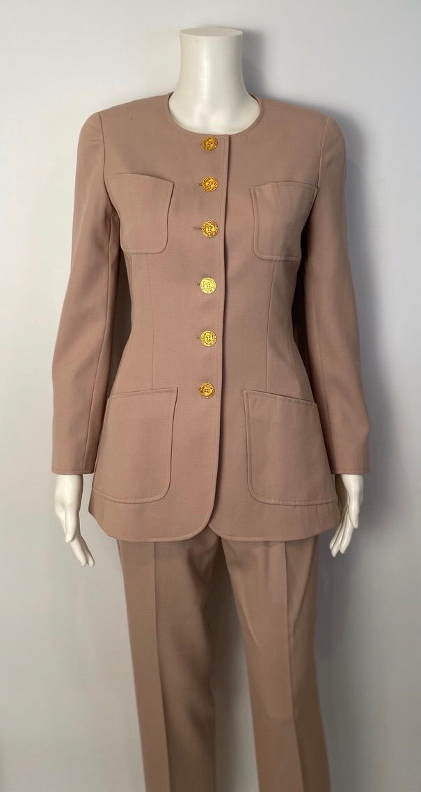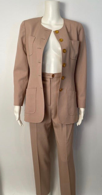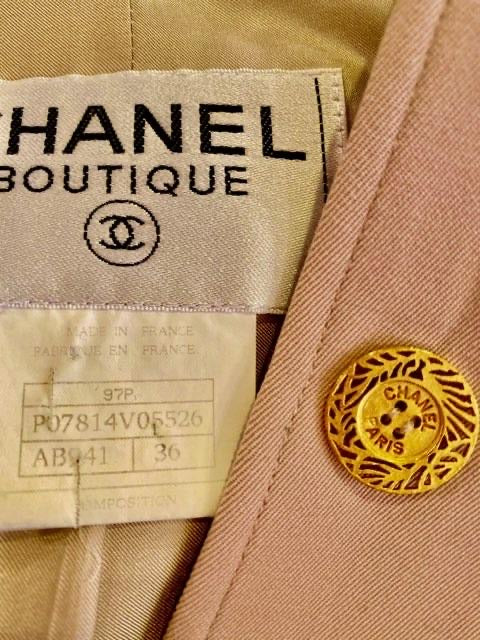 Vintage Chanel 97P, 1997 Spring Pant Suit Set with matching jacket in beige blush color.