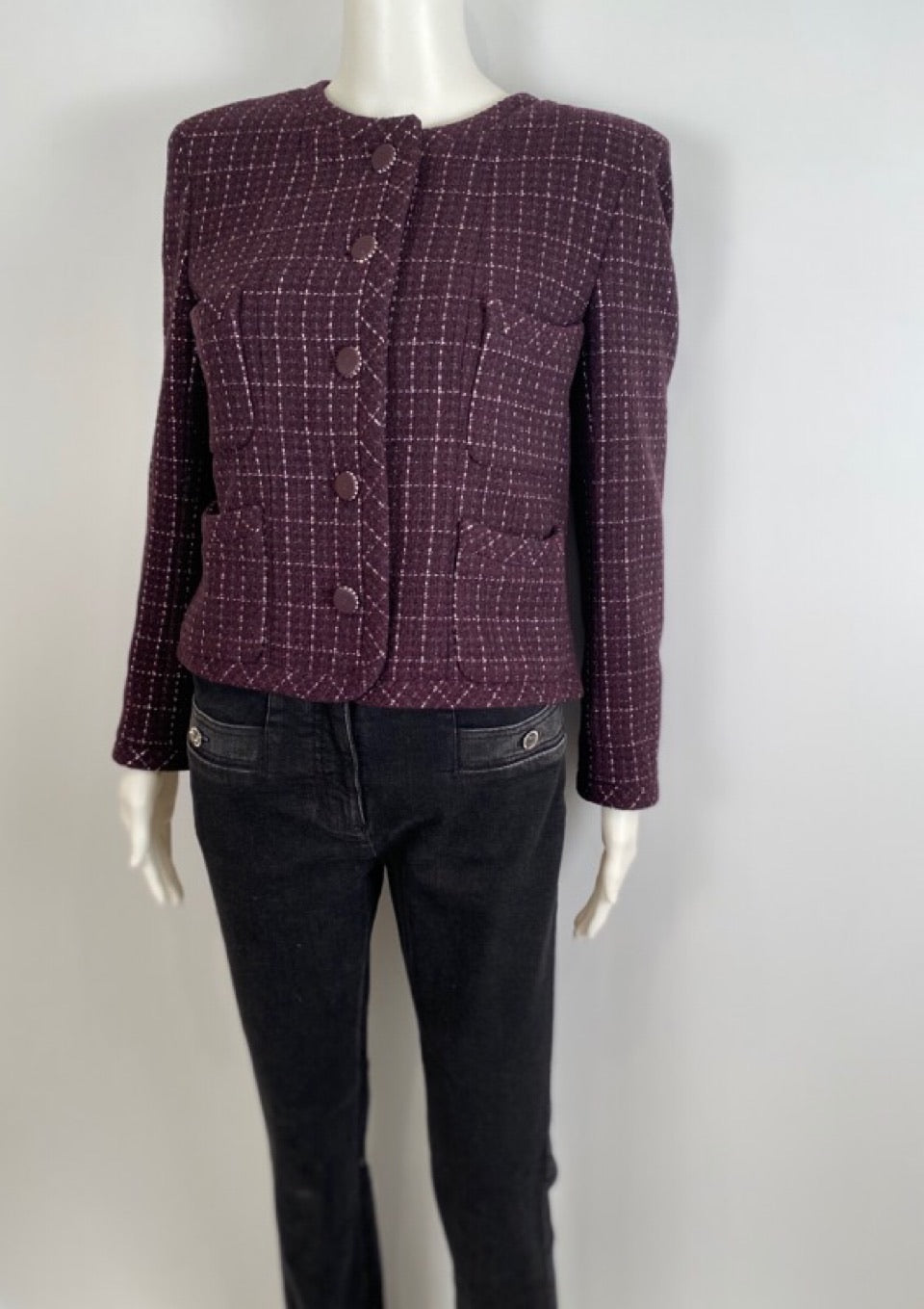 Vintage Chanel maroon jacket from the 02P, 2002 Spring collection.