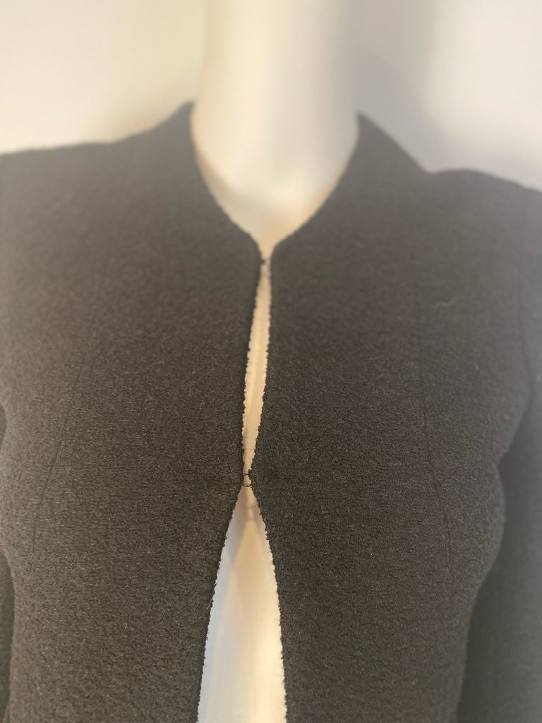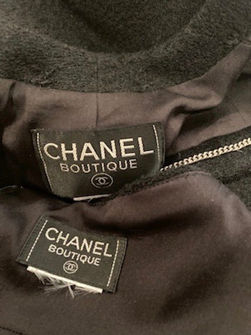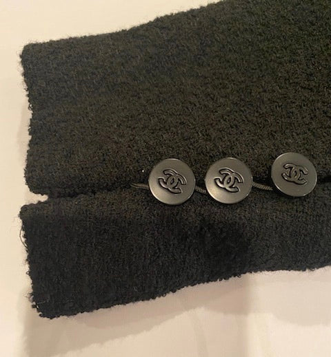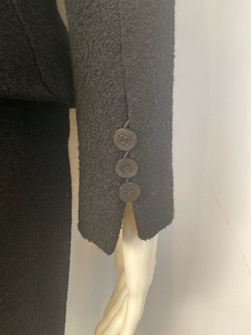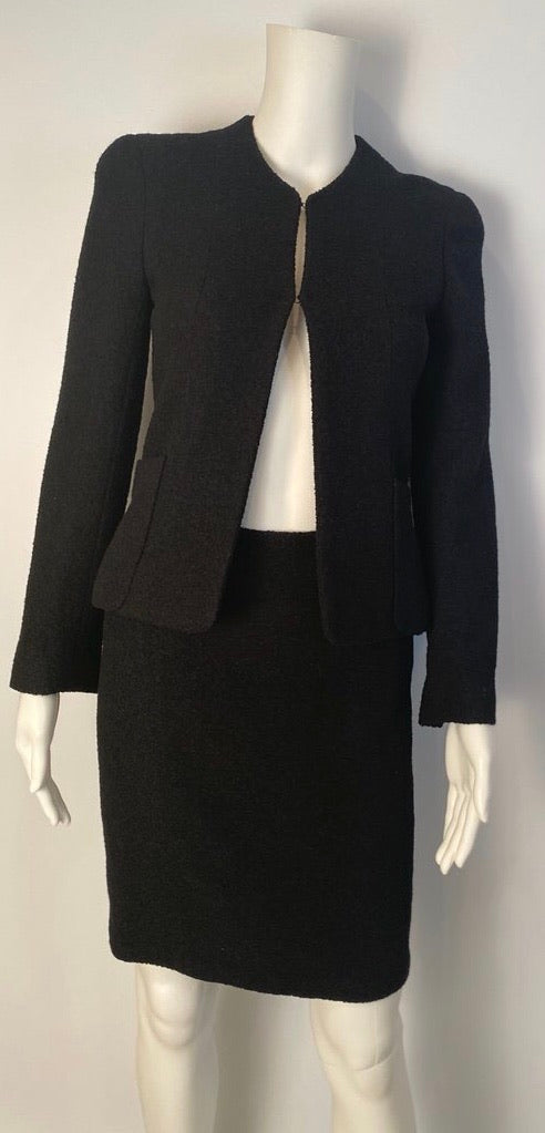 Vintage Chanel 98P, 1998 Spring Black Wool boucle Skirt Suit.