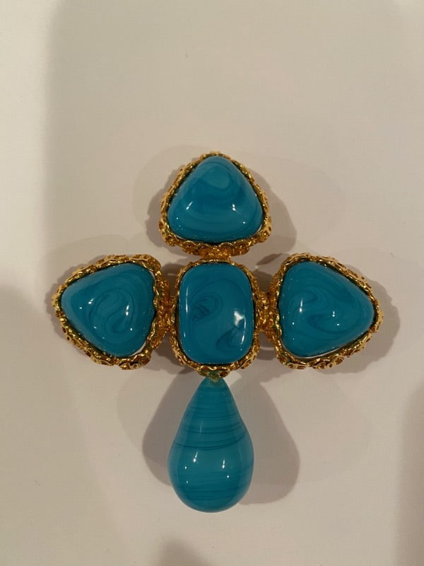 Very rare Large Vintage collectors’ item. Chanel 1989 Collection 28 turquoise cross brooch pin.