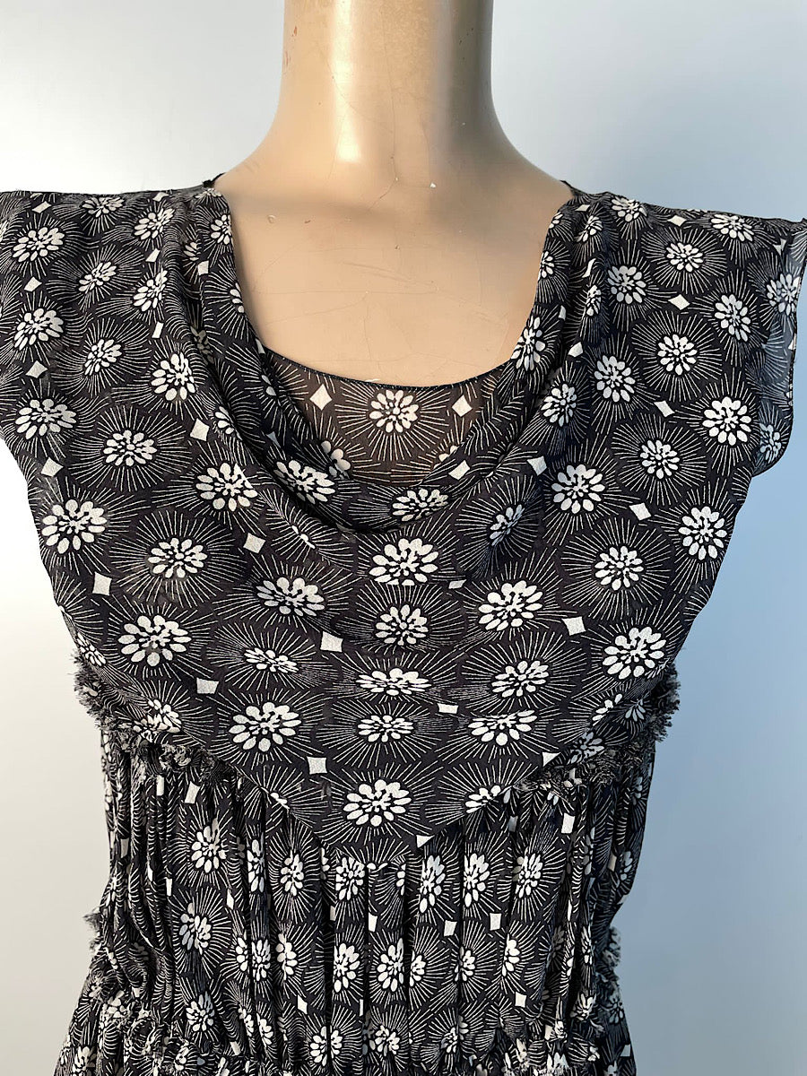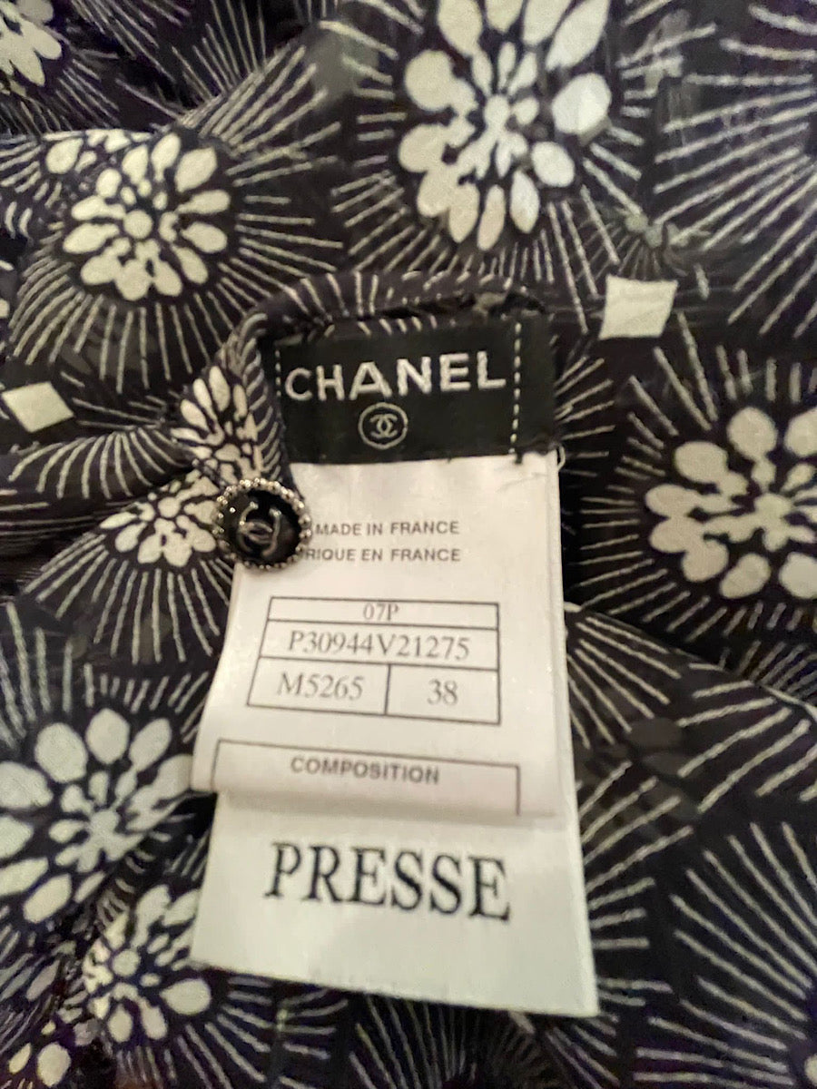 Chanel Summer silk black white floral dress from the 07P, 2007 Spring Ready to Wear Runway.
