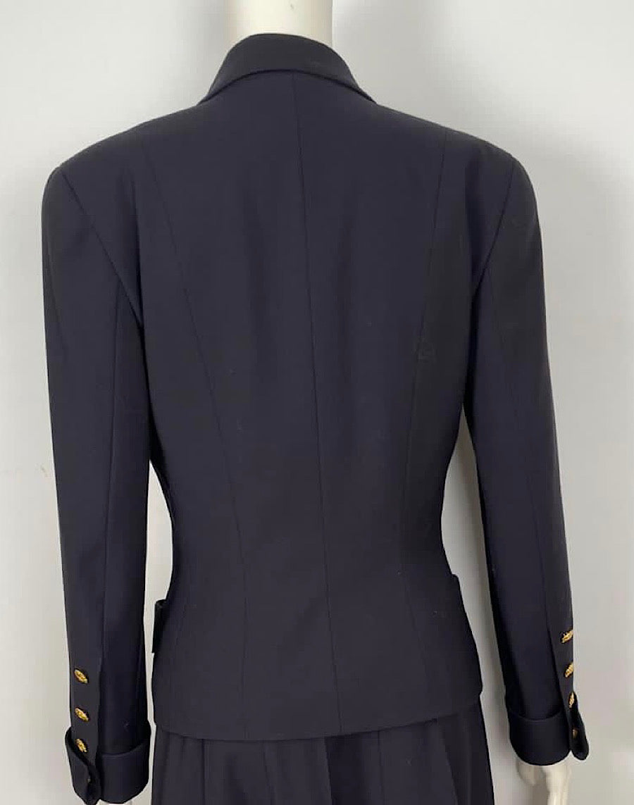 Late 1980’s Vintage Chanel Boutique Double Breasted Dark Navy Jacket FR 36 US 4