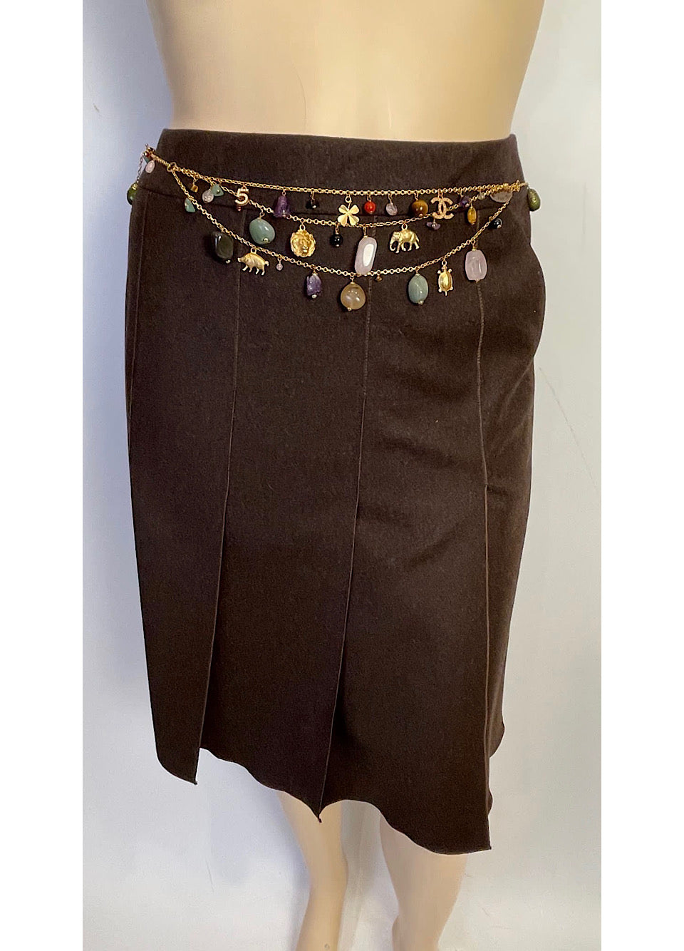 Chanel brown soft wool cashmere blend carwash style skirt from the Vintage 99P, 1999 Spring Collection.