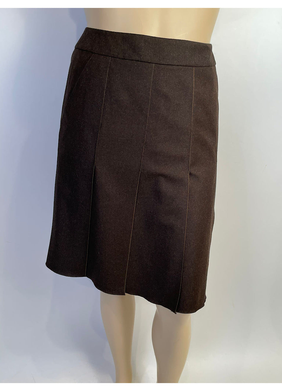 Chanel Vintage 99A 1999 Fall Brown Wool Pleated Skirt US 14