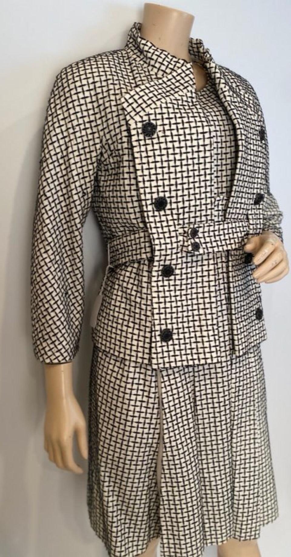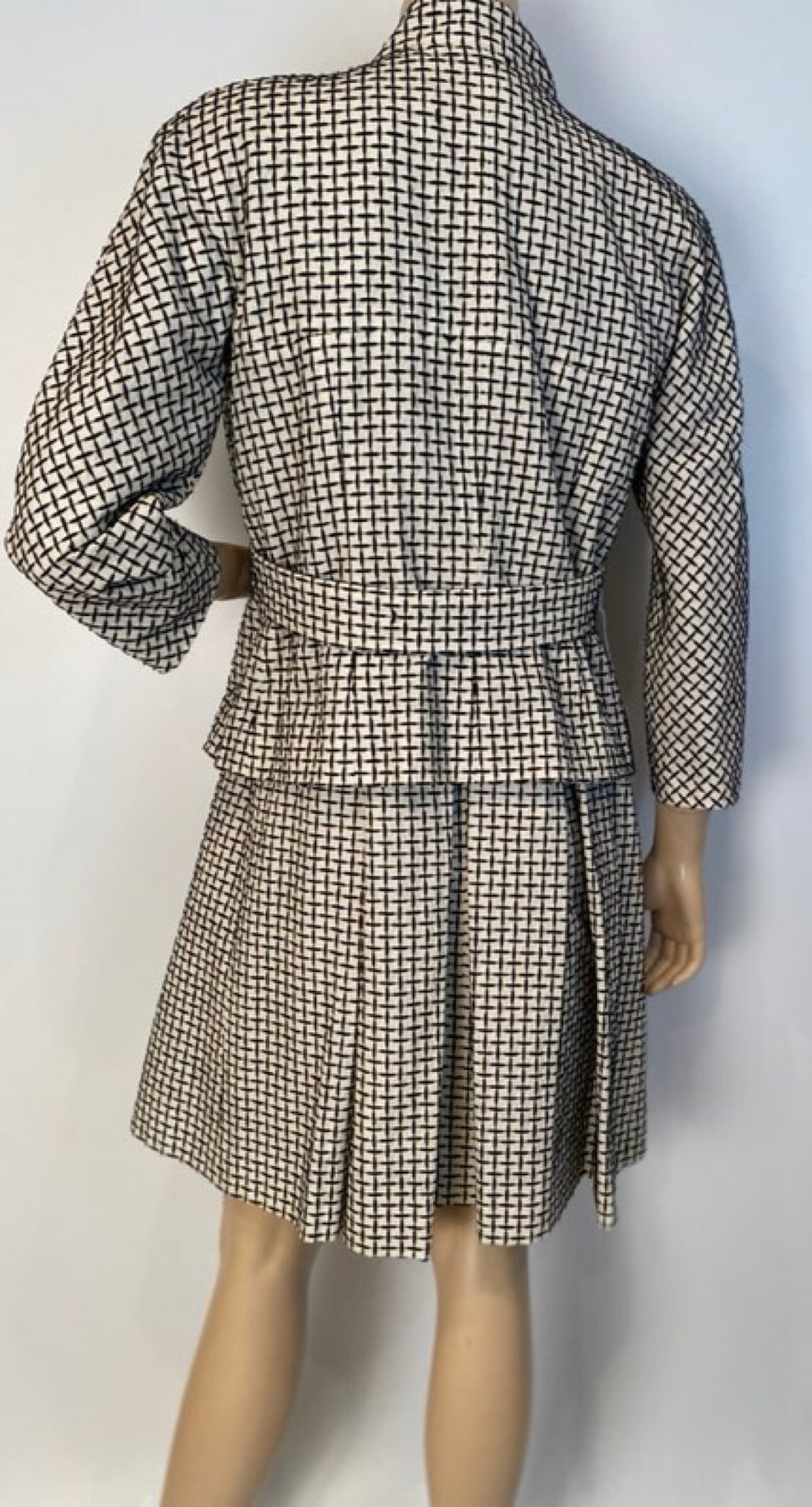- There is a 2" wide belt made from the same fabric which fastens in the front with 2 chanel buttons.