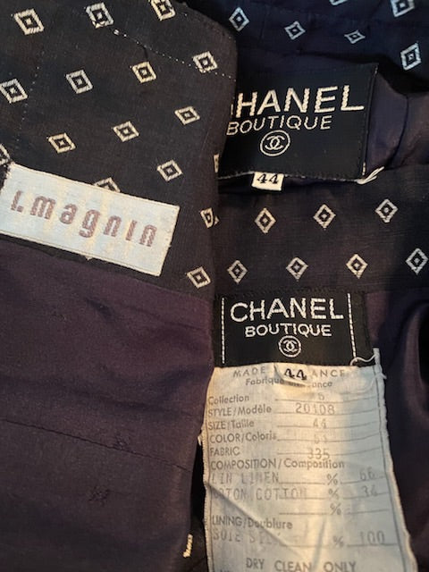 The suit was purchased at the Chanel boutique inside if of I. Magnin department store, the I. Magnin tag remains in the seam of the skirt.