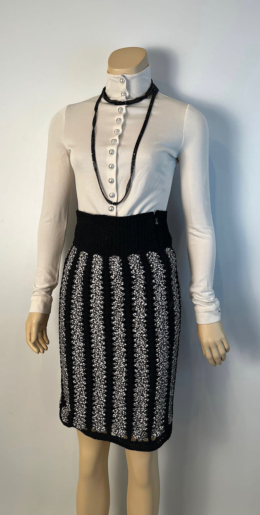 Shown with Black Chanel Skirt with necklace, sold separately under “Shop All.”