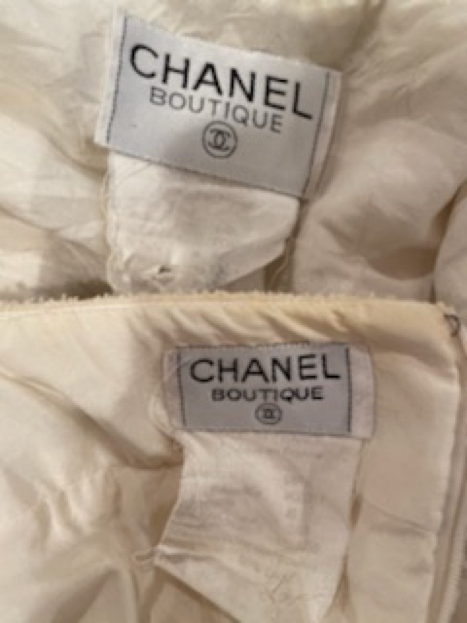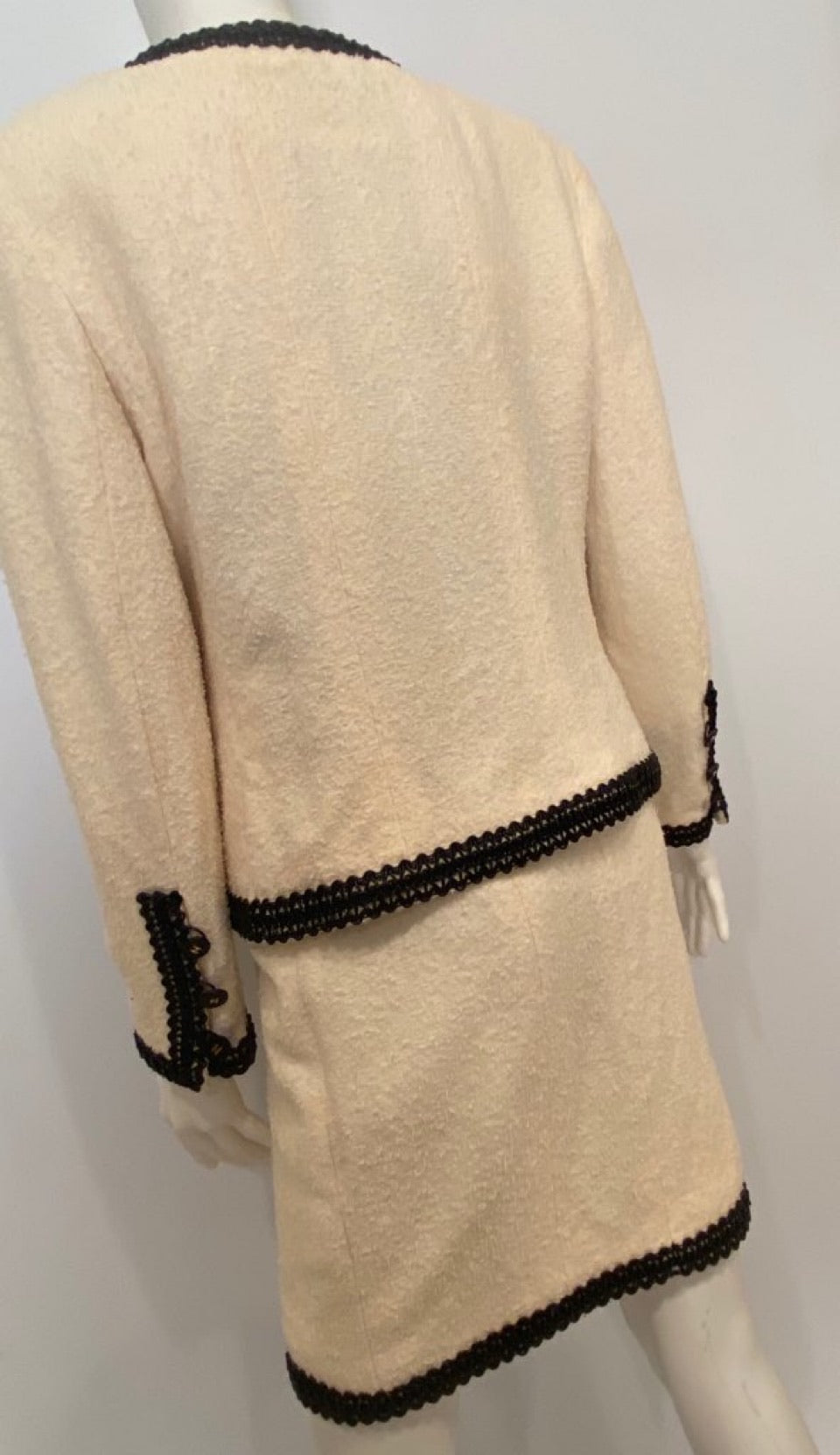 Extremely Rare 94P, 1994 Spring Cream with Black ‘Scubido’ Plastic Trim Boucle Jacket and Skirt Suit Set.