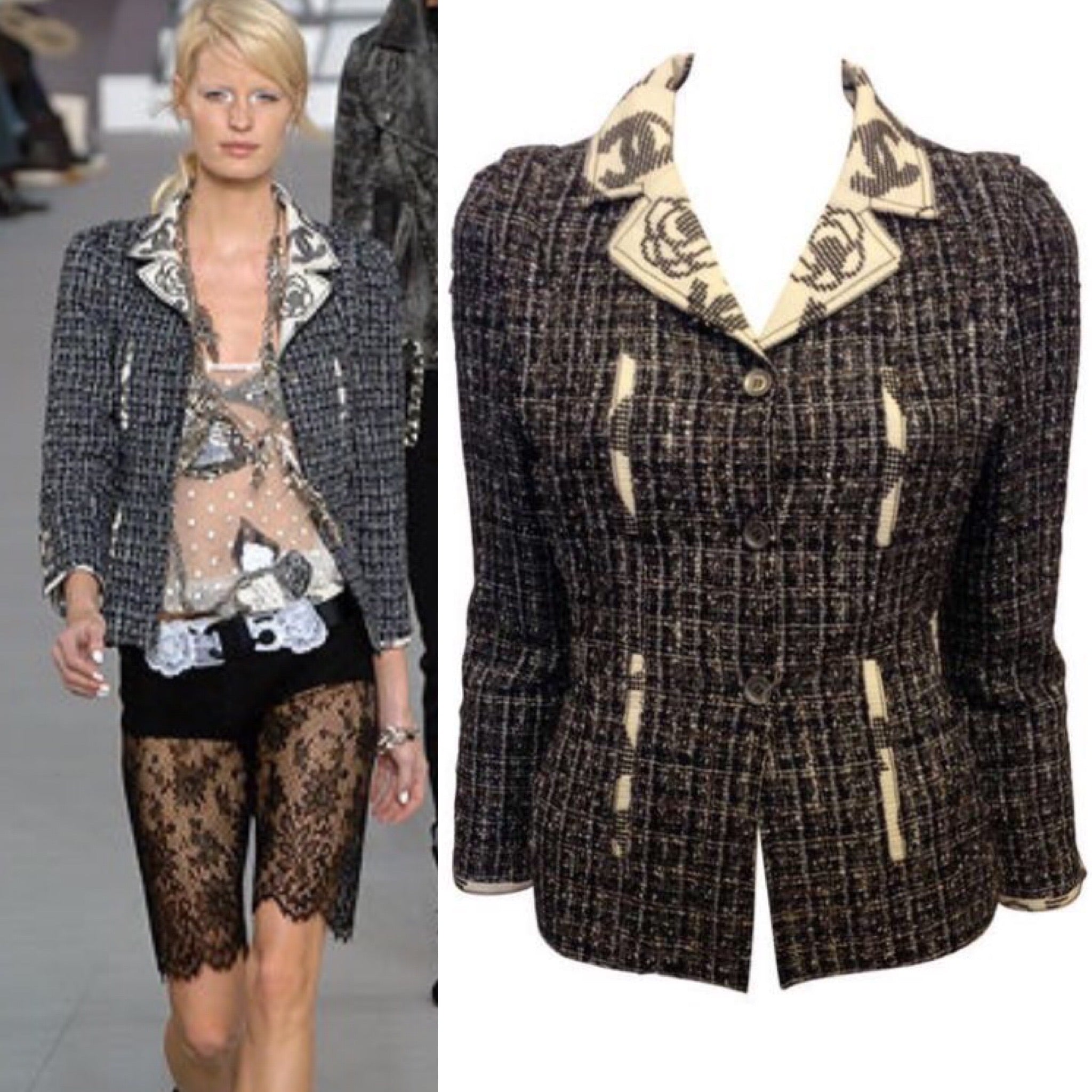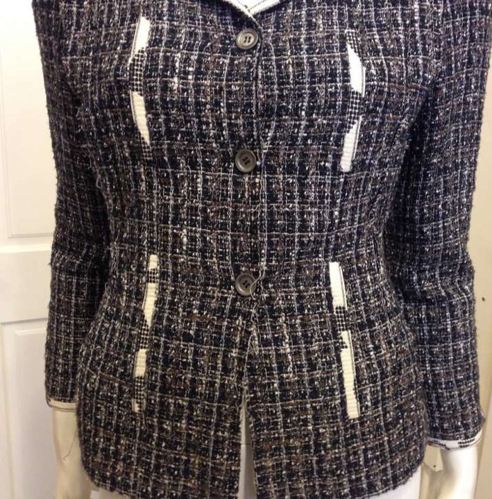 Chanel 2006 Spring, 06P Cotton tweed brown black white Blazer camellia jacket US 10/12