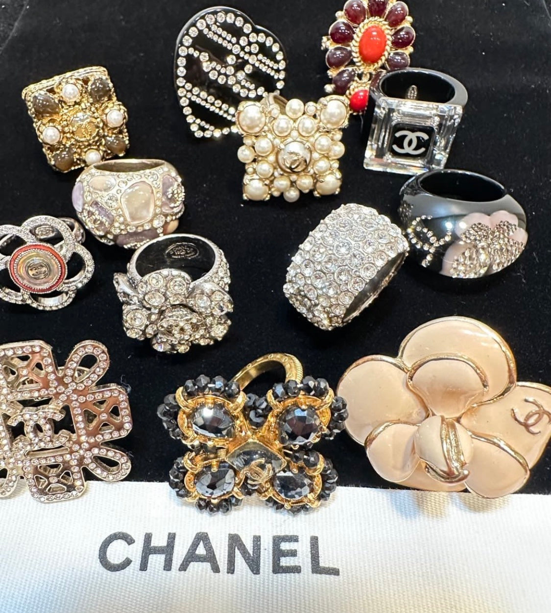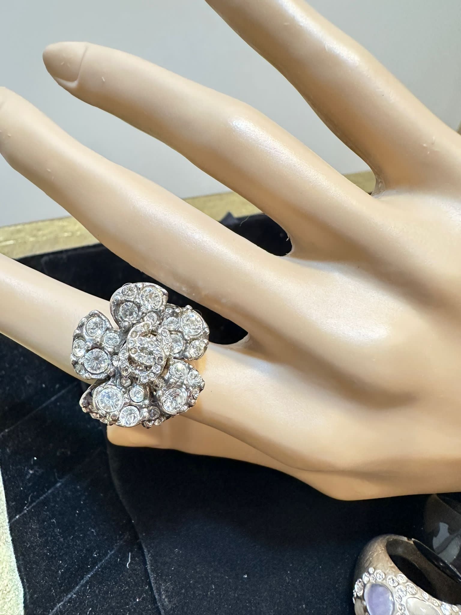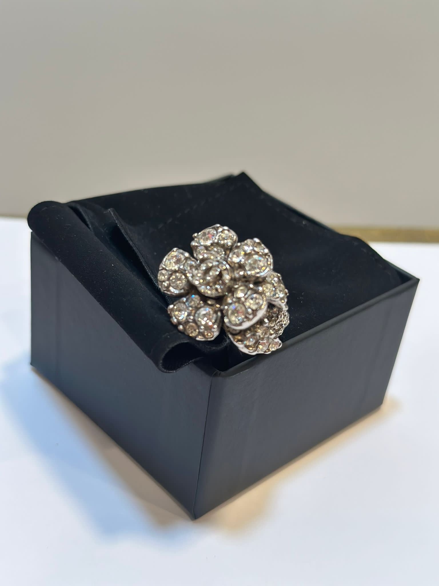 Chanel 2010 Crystal Camellia Flower Cocktail Ring Size 6.5