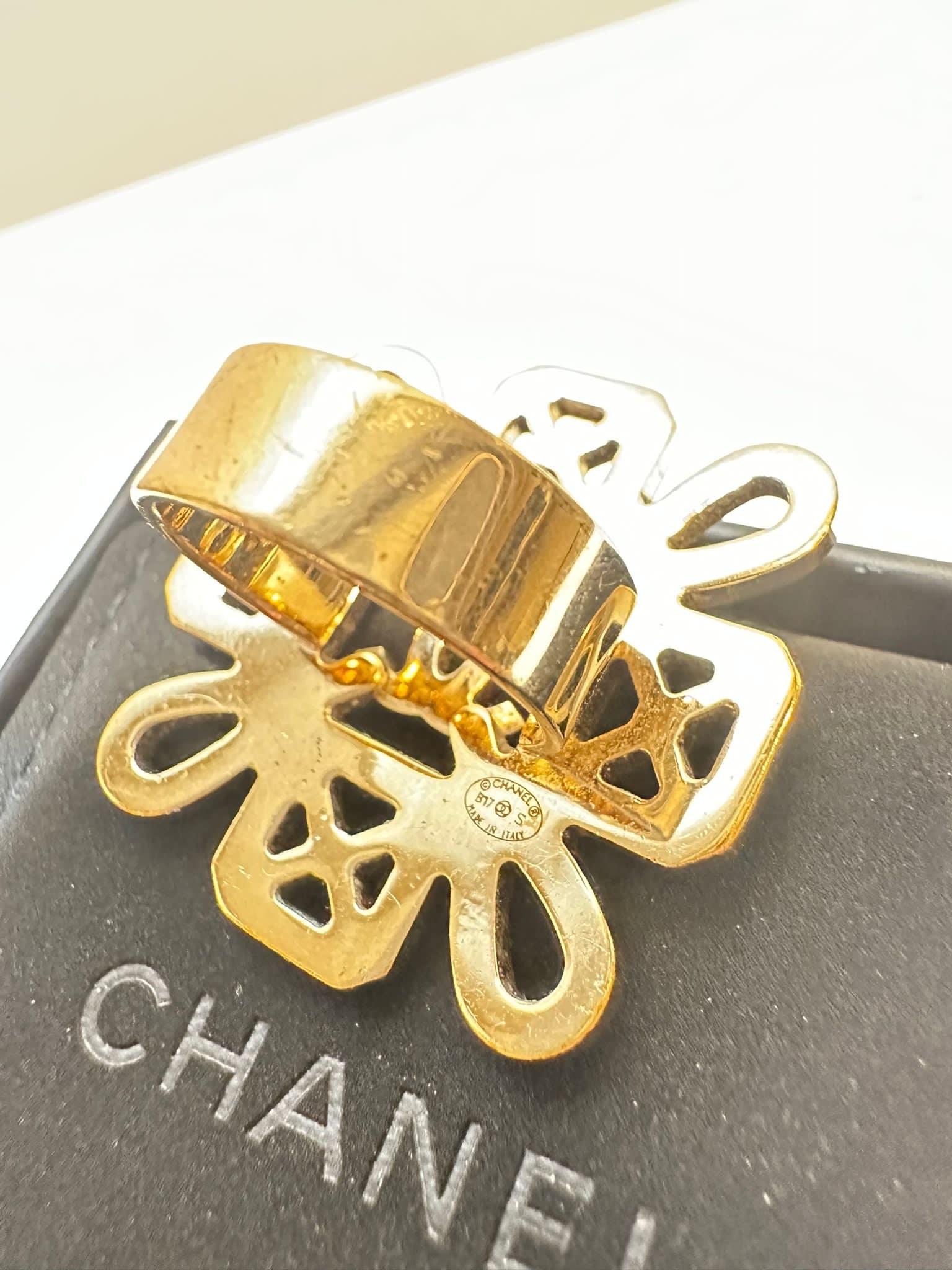 Very good condition, perfect other than tiny scratches on the band, which does not show when you are wearing the ring. This is an impressive Chanel ring for everyday wear or as a cocktail ring.